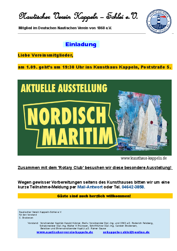 Das Kunsthaus Kappeln zeigt die in der Einladung beschriebene Ausstellung.